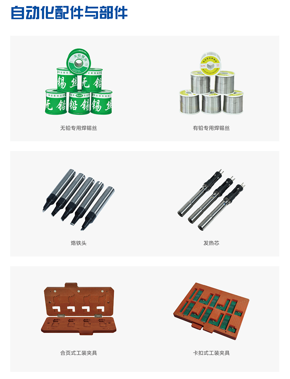 產(chǎn)品包括自動焊錫機(多軸桌面式焊錫機,CCD視覺白動焊錫機,機械手自動焊錫機以及非標自動焊錫機等),自動鎖螺絲機(吸附式鎖螺絲機,吹氣式鎖螺絲機,多軸自動鎖螺絲機,自動鎖螺母機等),點膠機系列設備(桌面式點膠機,CCD視覺點膠機,高速噴射點膠機,在線式點膠機等)。
